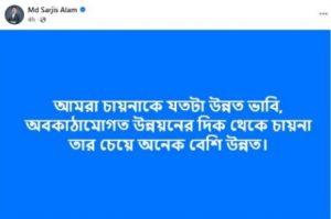 এদিকে, শুক্রবার (২৯ আগস্ট) চীন থেকে নিজের ভেরিফায়েড ফেসবুক পেজে একটি পোস্ট দিয়েছেন সারজিস আলম, যা এরই মধ্যে ভাইরাল হয়েছে।
