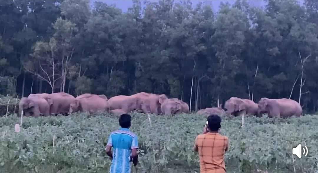গত কয়েক দিন ধরে বন্য হাতির একটি দল ঝিনাইগাতী উপজেলার নলকুড়া ইউনিয়নের সন্ধ্যাকুড়া, হলদিগ্রাম,গুমড়া,রাংটিয়া এবং কাংশা ইউনিয়নের ছোট গজনী,বড় গজনী,তাওয়াকুচা এলাকার গারো পাহাড়ে কমপক্ষে ৫০ থেকে ৭০ টি হাতি দল বেধে অবস্থান করছে। হাতির দলটি দিনের বেলা খাদ্যের সন্ধানে পাহাড়ের বিভিন্ন টিলায় ঘোরাঘুরি করলেও শেষ বিকেলে হাতির দলটি লোকালয়ে নেমে আসে। ক্ষয়ক্ষতির আশঙ্কায় গ্রামবাসী মশাল জ্বালিয়ে হইহুল্লোড় করে হাতির দলটিকে জঙ্গলে ফেরানোর চেষ্টা করে যাচ্ছেন।
