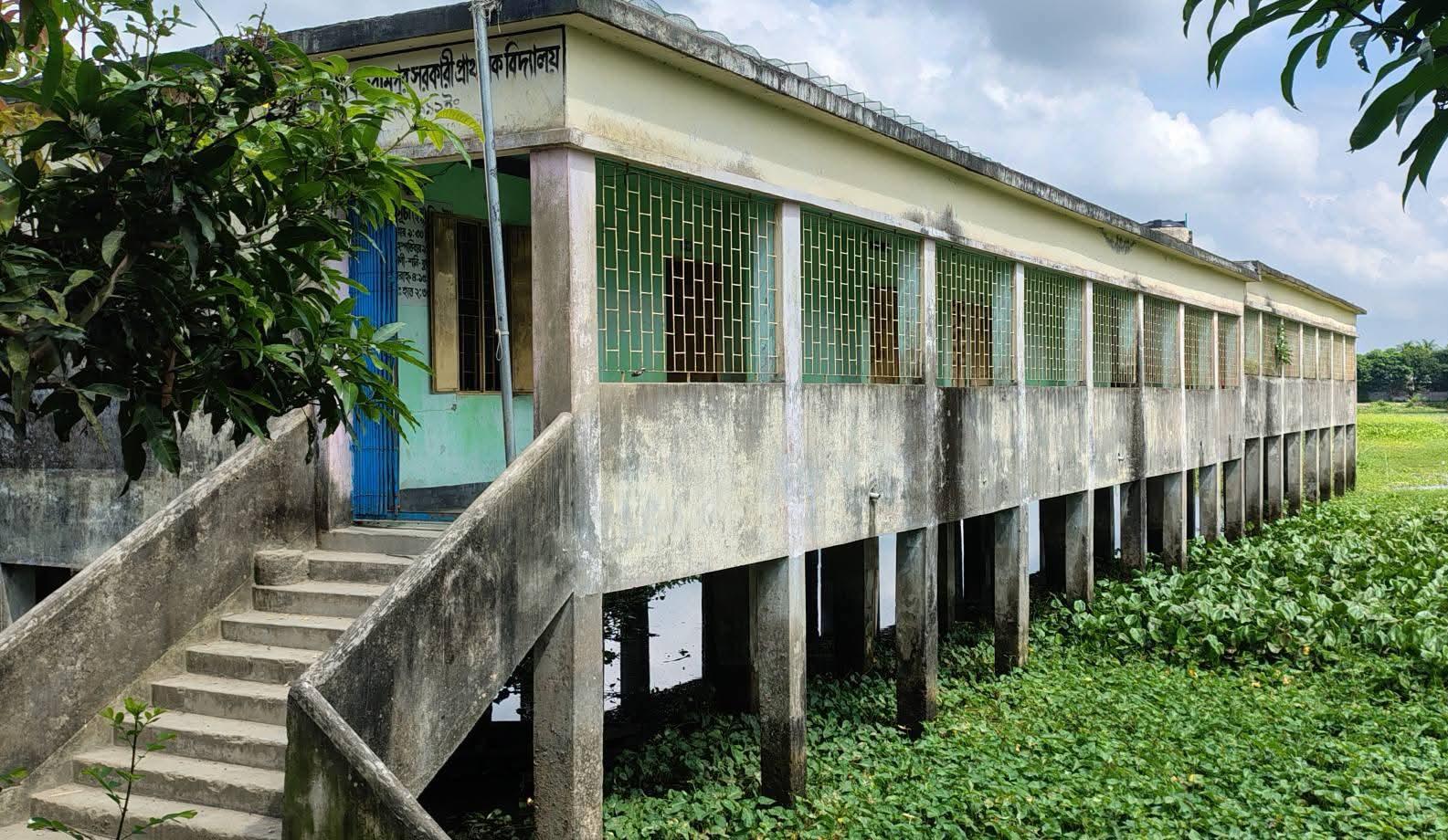 দীর্ঘ সময় পেরিয়ে গেলেও বিদ্যালয়ে শিক্ষার্থীদের জন্য নেই সঠিক প্রবেশপথ, নেই মাঠ, আর ঝুঁকিপূর্ণ ভবনে চলছে পাঠদান।