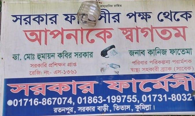 কুমিল্লার তিতাস উপজেলার ভিটিকান্দি ইউনিয়নের রতনপুর গ্রামের সরকার ফার্মেসীর মালিক হুমায়ুন কবির নামে এক ভূয়া ডাক্তারকে মোবাইল কোর্টের মাধ্যমে নগদ এক লাখ টাকা জরিমানা করা হয়েছে।