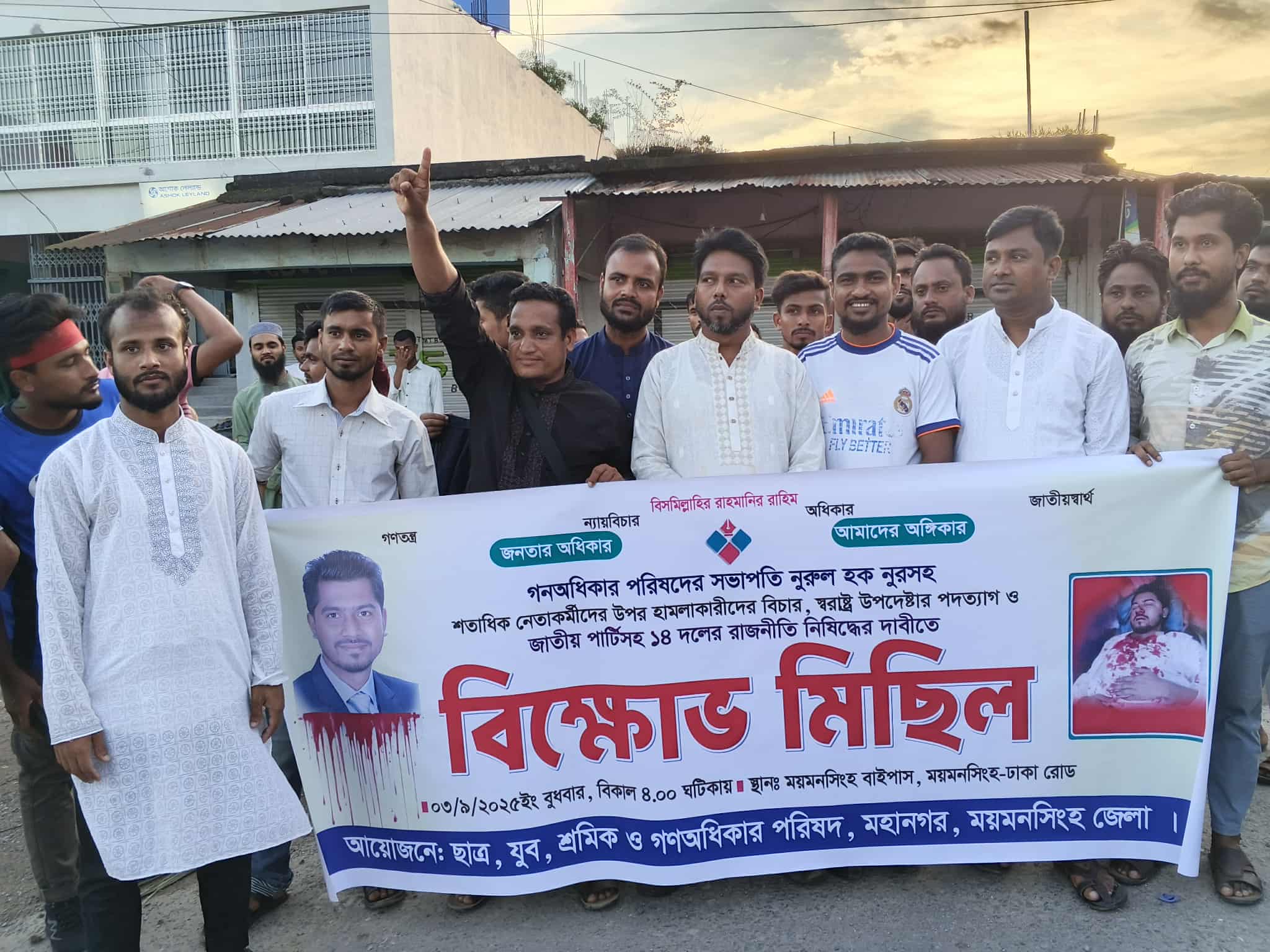 ময়মনসিংহে গণঅধিকার পরিষদের বিক্ষোভ মিছিল ও জাতীয় পার্টির রাজনীতি নিষিদ্ধের দাবি