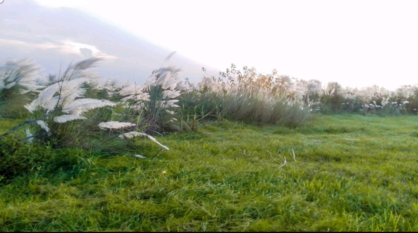 এক পাশে নদ, অন্য পাশে সাদা বকের সারির মতো যেন পালক ফুলিয়ে হাওয়ায় দুলছে কাশফুল। এ যেন যমুনা নদীর পাড়ে সবুজের ভেতর অনেকটা জায়গাজুড়ে সাদার মেলা বসিয়েছে কাশফুল।