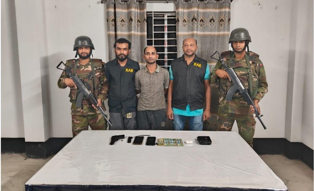 সেনাবাহিনী জানায়, গোপন সংবাদের ভিত্তিতে অভিযান চালিয়ে তাকে আটক করা হয়। এসময় তার কাছ থেকে একটি দেশীয় ফাইভ স্টার পিস্তল (ম্যাগাজিনসহ), একটি রাউন্ড গুলি, দুটি স্মার্টফোন, দুটি সিমকার্ড ও নগদ টাকা উদ্ধার করা হয়।