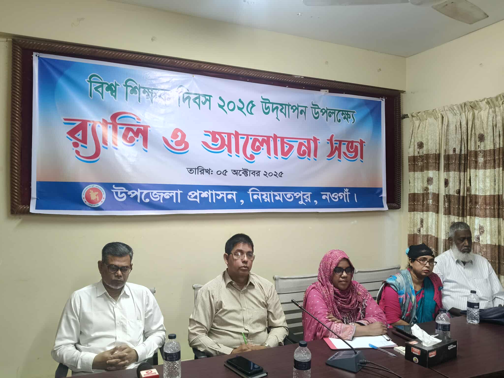 নওগাঁর নিয়ামতপুর উপজেলায় যথাযোগ্য মর্যাদায় ও উৎসবমুখর পরিবেশে উদযাপিত হয়েছে বিশ্ব শিক্ষক দিবস ২০২৫। এ উপলক্ষে রবিবার সকালে ১০ঘটিকায় উপজেলা প্রশাসনের আয়োজনে একটি বর্ণাঢ্য র্যালি ও আলোচনা সভা অনুষ্ঠিত হয়।