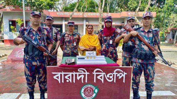 মোঃ মিনারুল ইসলাম ভারতে পাচারকালে চুয়াডাঙ্গার জেলার দামুড়হুদা উপজেলার কামারপাড়া বারাদী সীমান্ত থেকে ৩টি স্বর্ণের বারসহ আসমা খাতুন নামে এক নারী চোরাকারবারিকে আটক করেছে চুয়াডাঙ্গা- ৬ বিজিবর সদস্যরা।