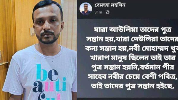 মো:হানিফ মিয়া কুমিল্লা জেলার হোমনা উপজেলায় মহানবী হযরত মোহাম্মদ (সা.)কে কুটুক্তি করে সামাজিক যোগাযোগের মাধ্যম ফেসবুকে একের পর এক পোষ্ট করায় মহসিন নামের এই ব্যক্তিকে গ্রেফতার করেছে হোমনা থানা পুলিশ।