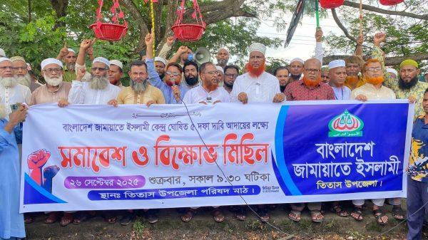মো:হানিফ মিয়া বাংলাদেশ জামায়াতে ইসলামী কেন্দ্র ঘোষিত ৫ দফা দাবি আদায়ের লক্ষ্যে ২৬ সেপ্টেম্বর শুক্রবার সকাল সাড়ে ৯টায় কুমিল্লা জেলা তিতাস উপজেলা পরিষদে বিশাল সমাবেশ ও বিক্ষোভ মিছিল অনুষ্ঠিত হয়।